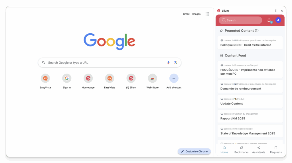 Why go to Elium when Elium can come to you? Our Browser Extension brings your knowledge base software to any webpage you visit. In addition, you can search, find, and even ask questions via the extension whilst you browse. Simply put, it’s your knowledge, right where you need it.