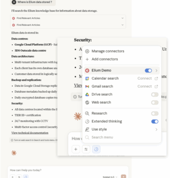 For those who want to push the boundaries, we’ve opened up our Answer and Smart Assistants via API and via MCP to your own AI services such as OpenAI’s ChatGPT, Anthropic Claude, Mistral’s Le Chat, etc. This means you can now build custom integrations that leverage Elium’s AI brain. In other words, you can feed Elium answers into your internal chatbot or a custom portal. Ultimately, the possibilities are yours to define.