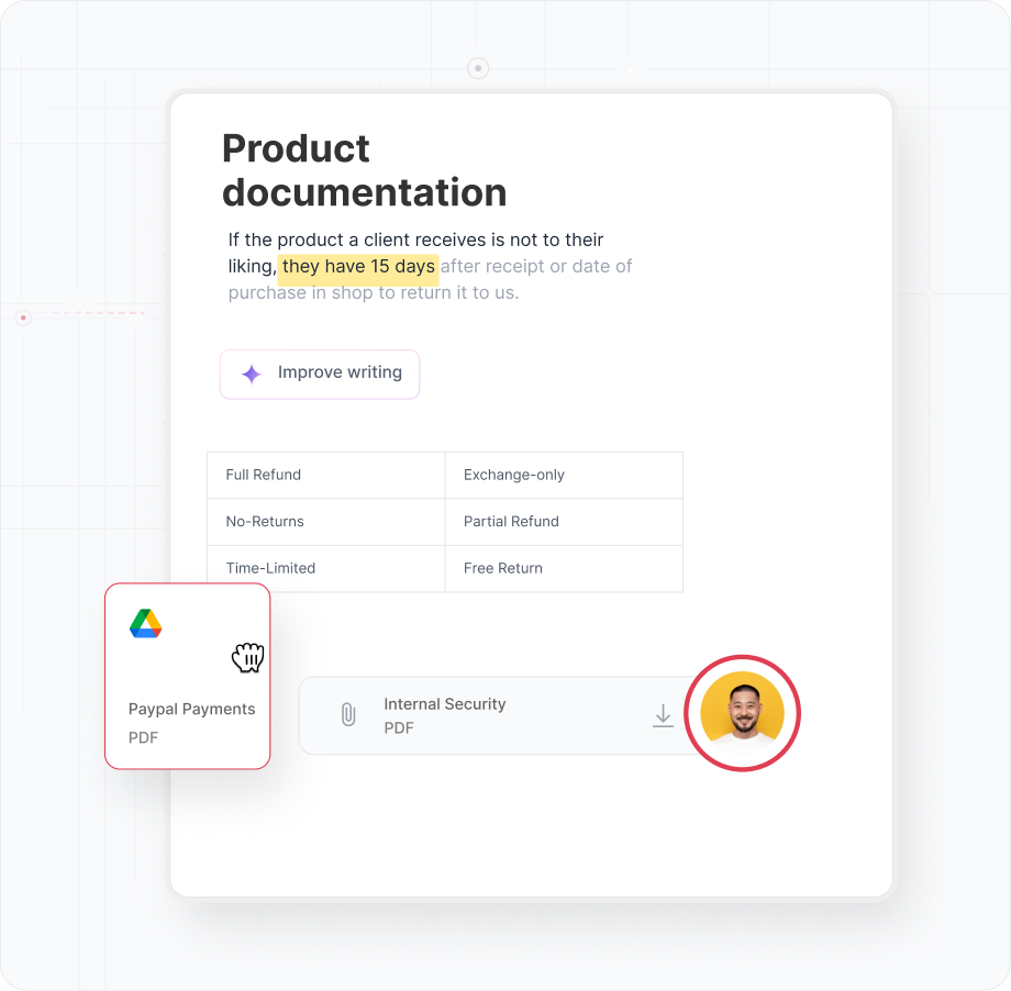 Transformez les connaissances en un atout stratégique grâce à une documentation claire et sans erreur, avec des contrôles de niveau entreprise.